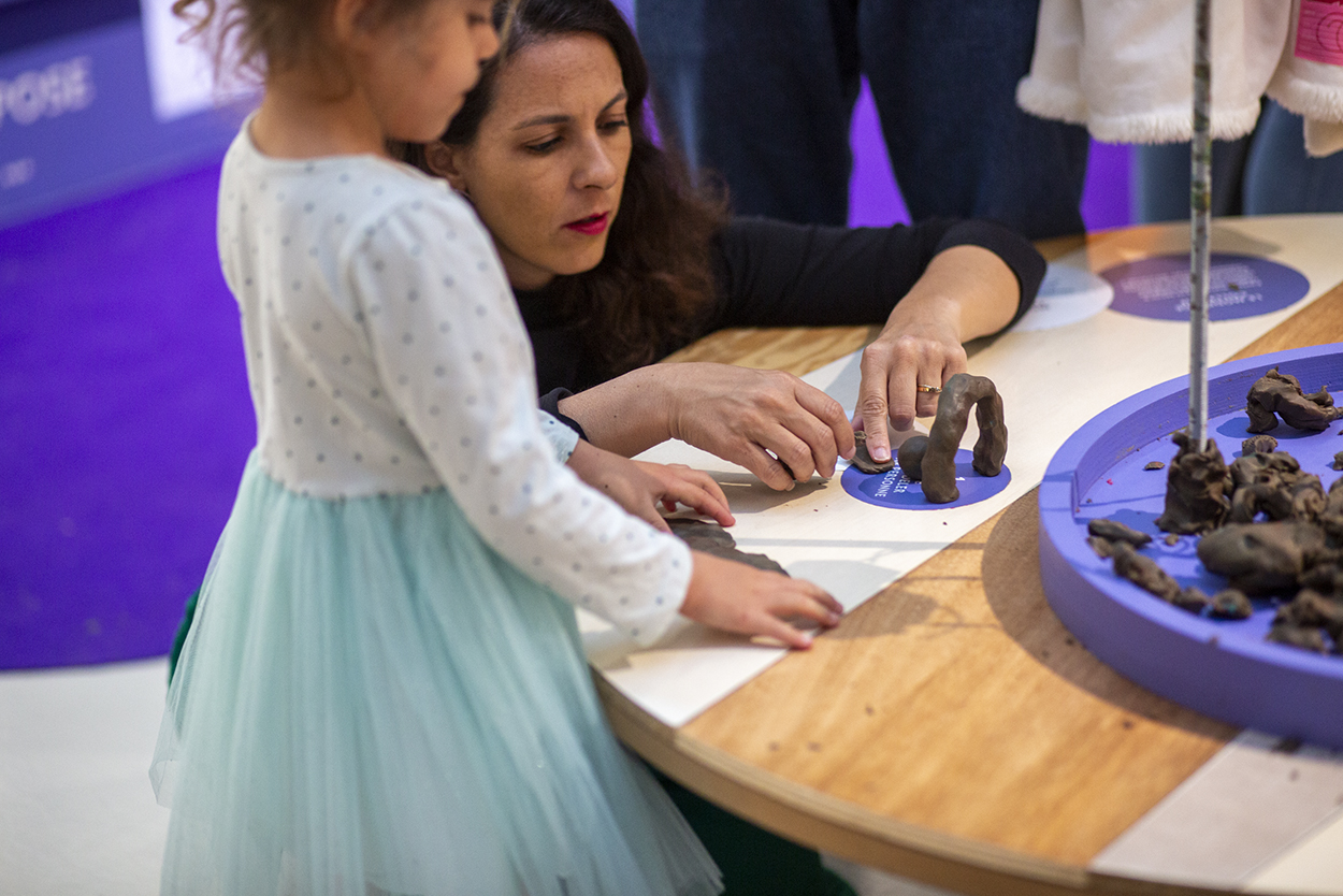 L’espace « Touche-à-tout ! » est une invitation au modelage seul ou à plusieurs, et à la découverte sensorielle des outils et matériaux du sculpteur grâce à un dispositif interactif. Avant de partir, glissez sur un drôle de toboggan.